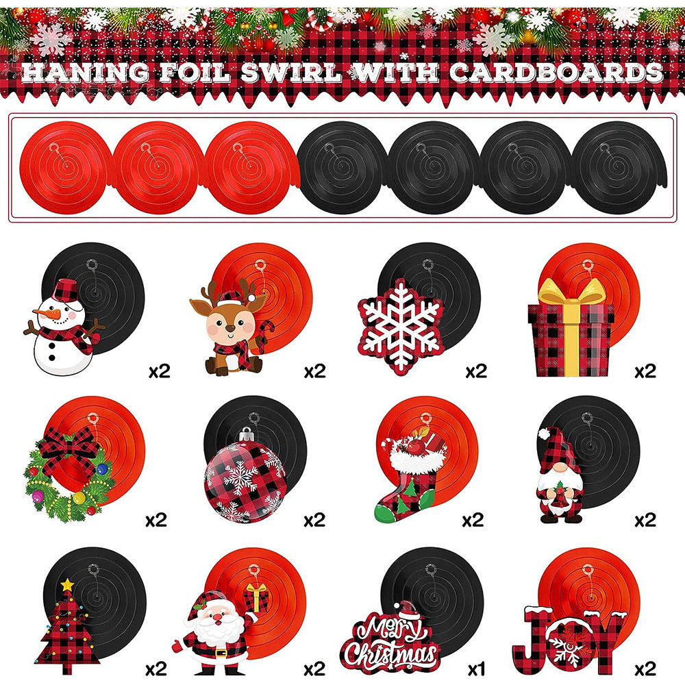 30 Pieces Santa Claus Elk Snowflake Sign Hanging Swirls Decoration